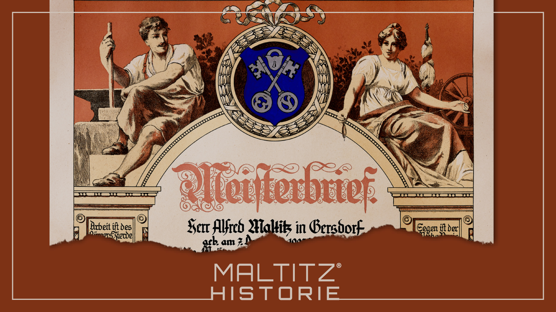 Im Jahr 1934 legte Alfred Maltitz im Alter von 27 Jahren seine Meisterprüfung als Schlosser an der Gewerbekammer Chemnitz ab.